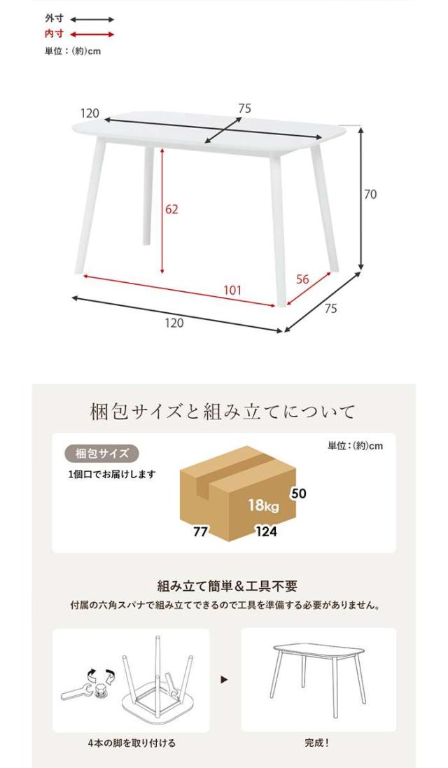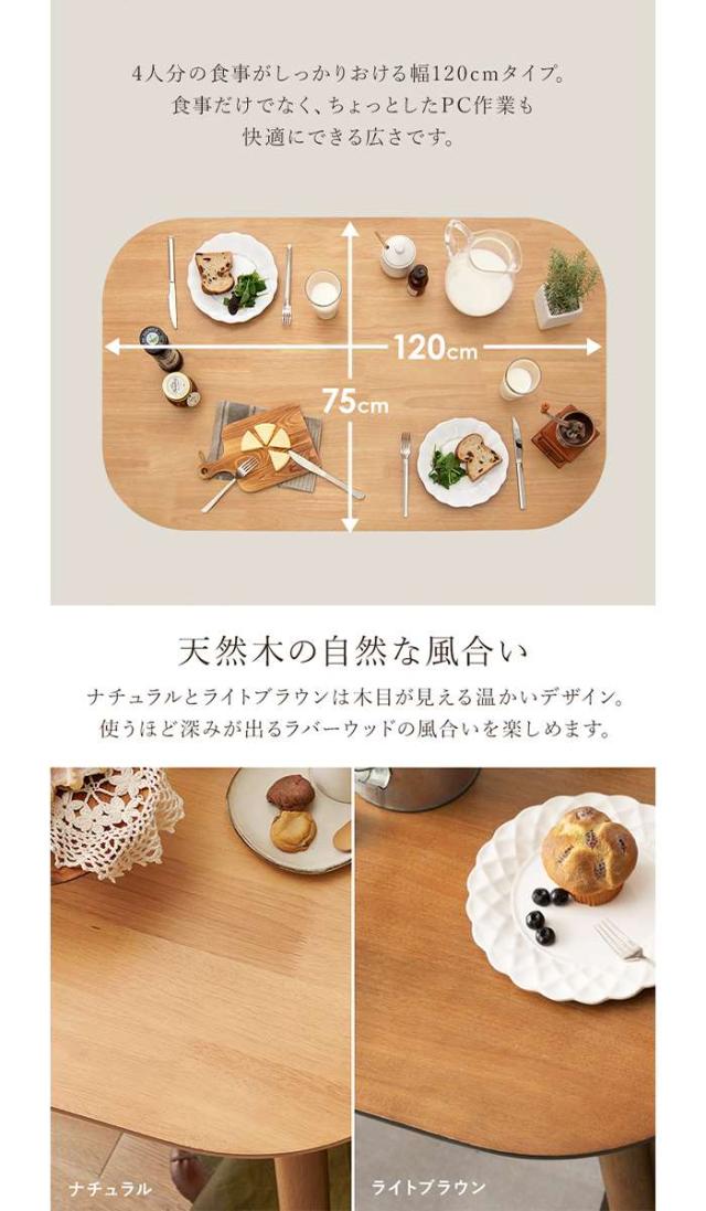■商品名:テーブル ダイニングテーブル 120x75cm テーブル単品 天然木 カフェ風テーブル ファミリー向け
