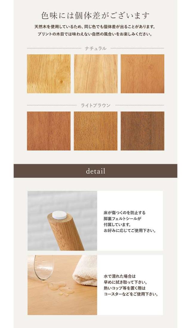 ■材質:主材:天然木、天板:(ナチュラル、ライトブラウン)天然木化粧繊維板・(ホワイト)繊維板