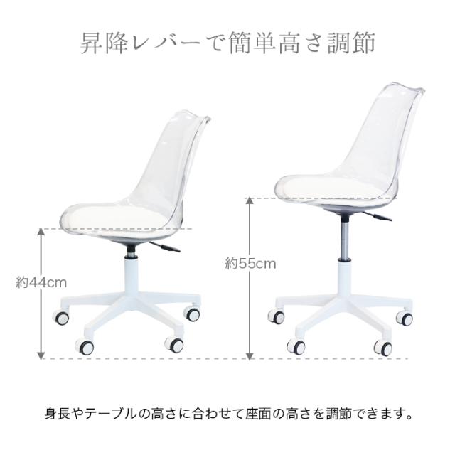 チャールズ&レイ・イームズ夫妻作品の代表作「DSW」!言わずと知れたデザイナーズチェアの金字塔です。包み込まれるような座面デザインで座り心地も抜群。クッション付きで冬でも安心して座れます。透明な座面はお部屋に置いても圧迫感がなく、お部屋の雰囲気をさりげなくオシャレにしてくれます。昇降レバーで簡単に高さ調節ができ、キャスターで移動もラクラク。