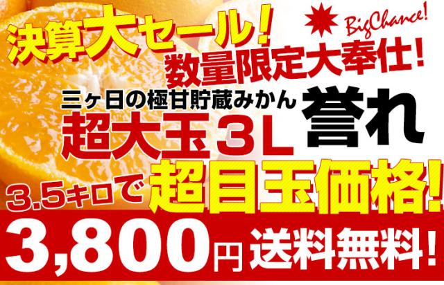 静岡県より産地直送 JAみっかび 三ケ日みかん 誉れ 超大玉3Lサイズ 約3.5キロ ミカン 蜜柑 みかん 送料無料