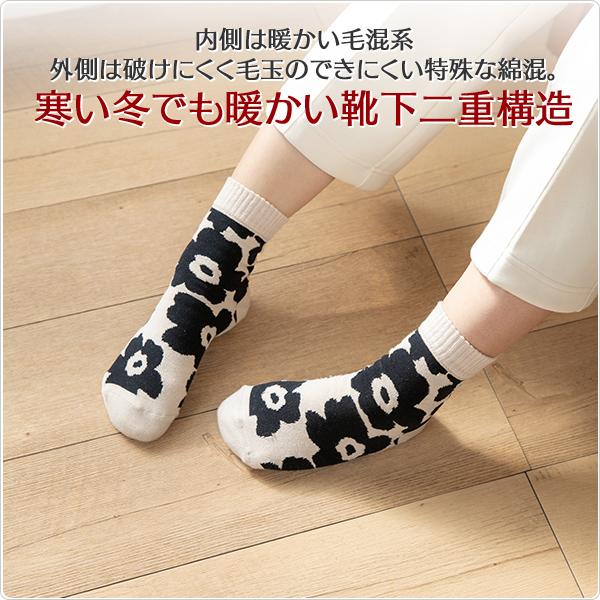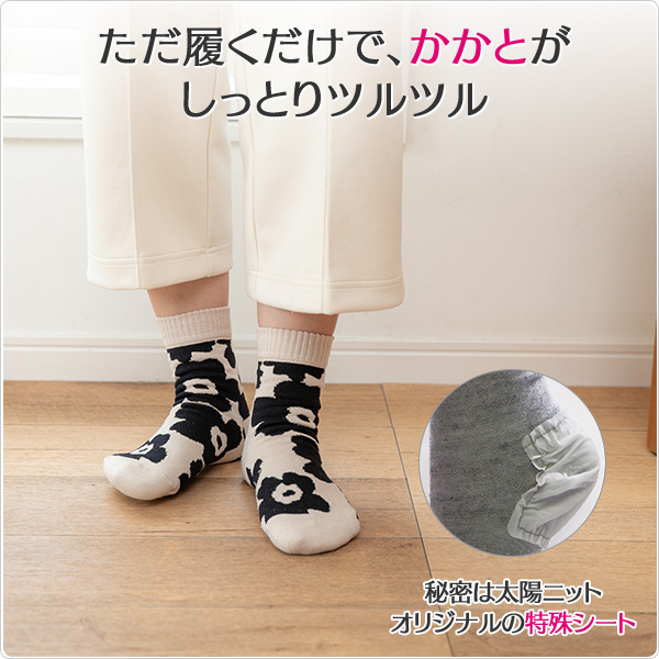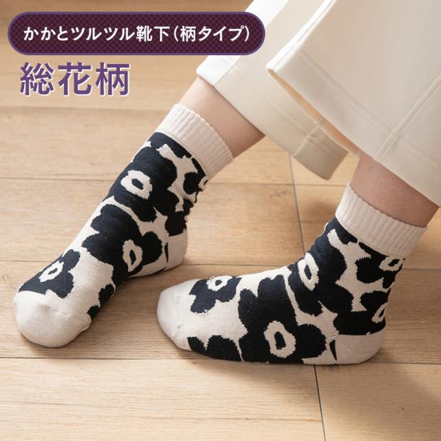 (NEW) かかとツルツル靴下 毛混(総花柄)かかとケア靴下 かかとつるつる靴下 かかと保湿 かかと角質除去 23-25cm 671 ★太陽ニット