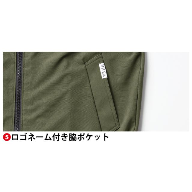 ◇機能:UVカット・高密度リップ・吸汗速乾・防風・撥水加工・左袖シリコンVILEAロゴ・襟ジャージ・背メッシュ仕様・裾ゴム・ロゴネーム付き脇ポケット