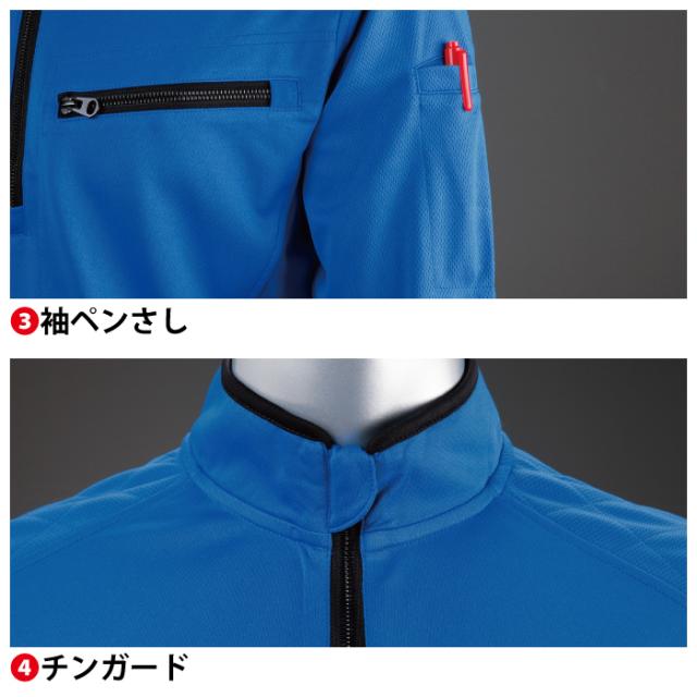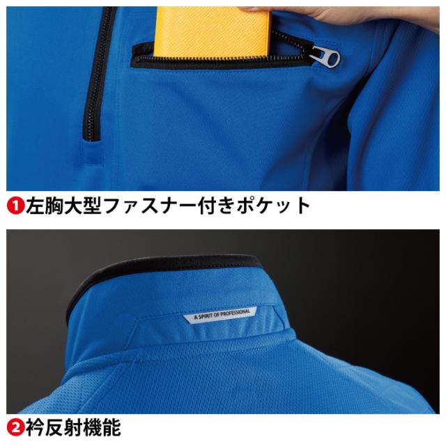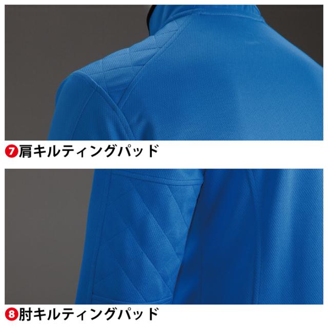 ◇機能:脇消臭機能・吸汗・速乾・左胸大型ファスナー付きポケット・襟反射機能・袖ペンさし・チンガード・オリジナル汗止めテープ仕様(襟)・脇スリットオリジナルテープ仕様(裾)・肩キルティングパッド・肘キルティングパッド