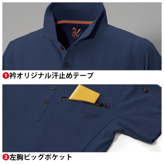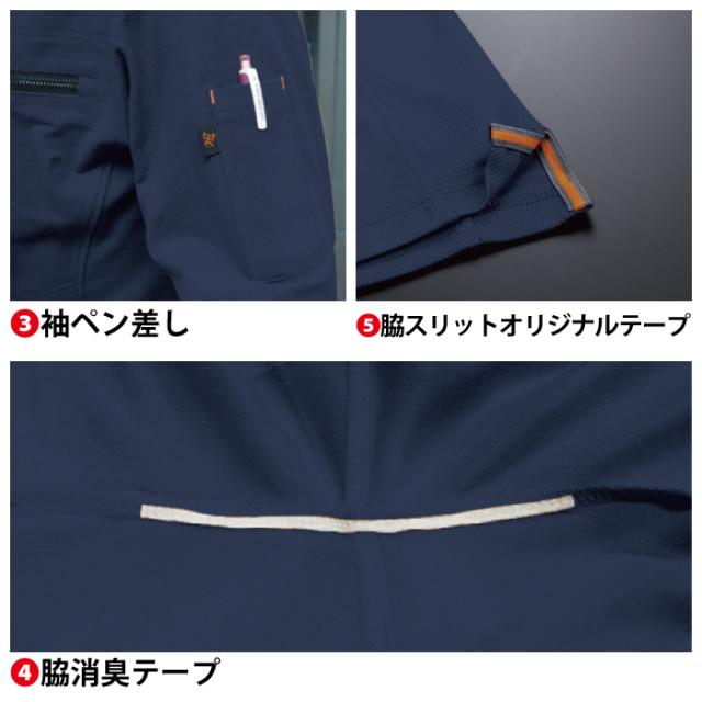 ◇機能:鹿の子・襟オリジナル汗止めテープ・左胸ビッグポケット・袖ペン差し・脇消臭テープ・脇スリットオリジナルテープ