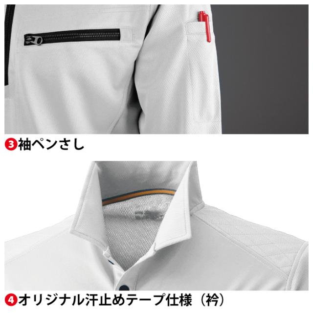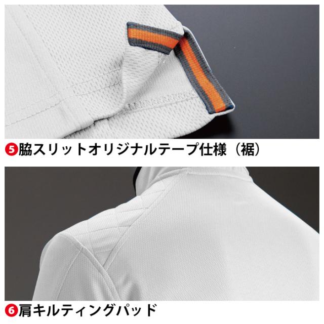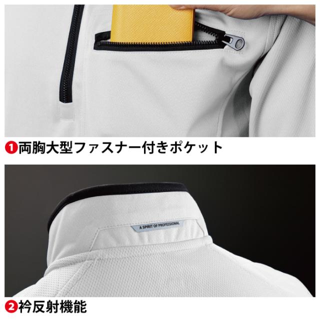 ◇機能:脇消臭機能・吸汗・速乾・左胸大型ファスナー付きポケット・襟反射機能・袖ペンさし・オリジナル汗止めテープ仕様(襟)・脇スリットオリジナルテープ仕様(裾)・肩キルティングパッド