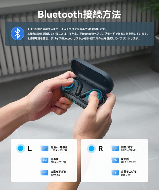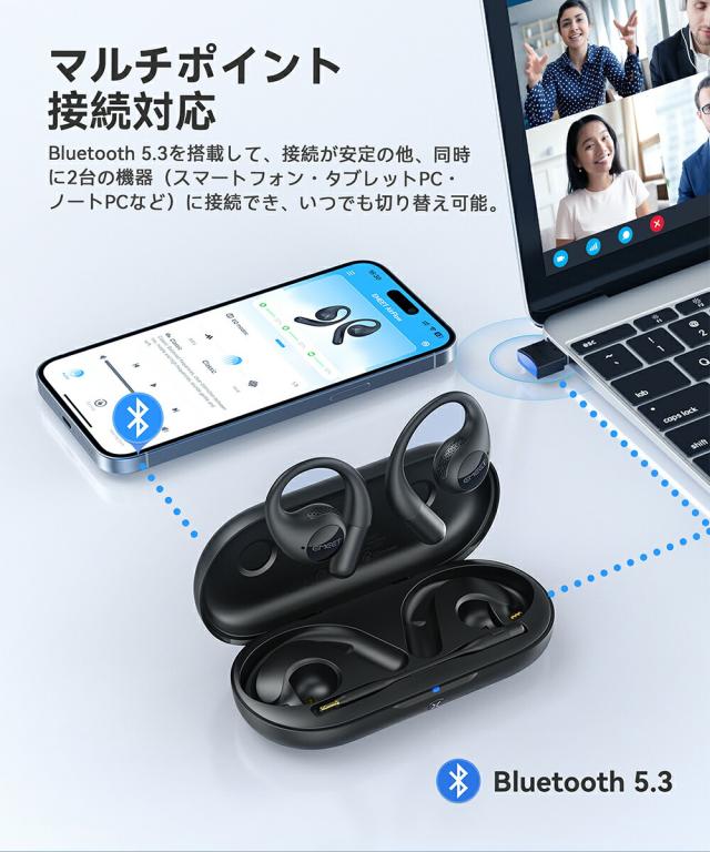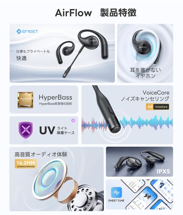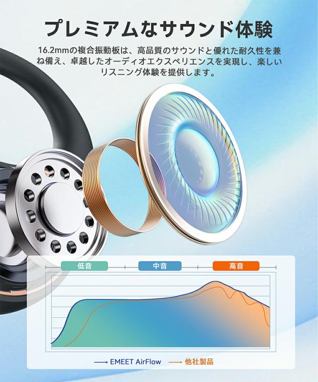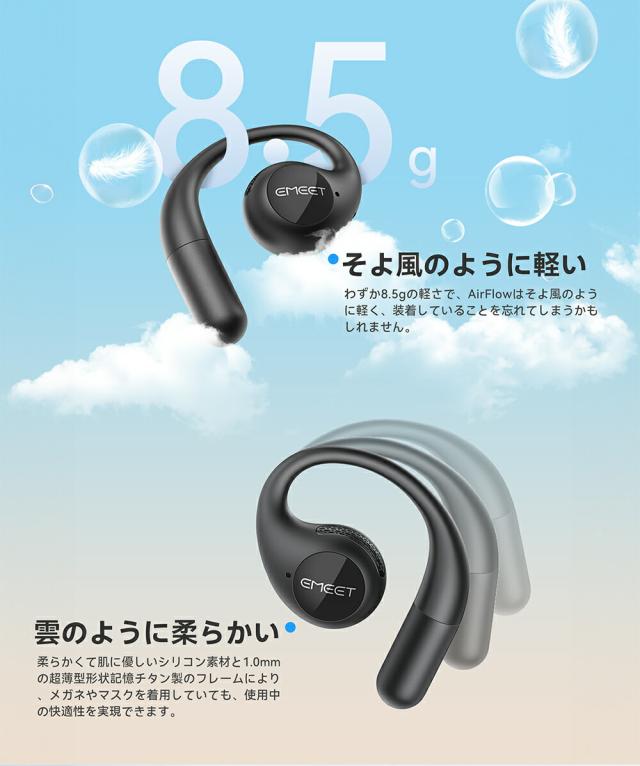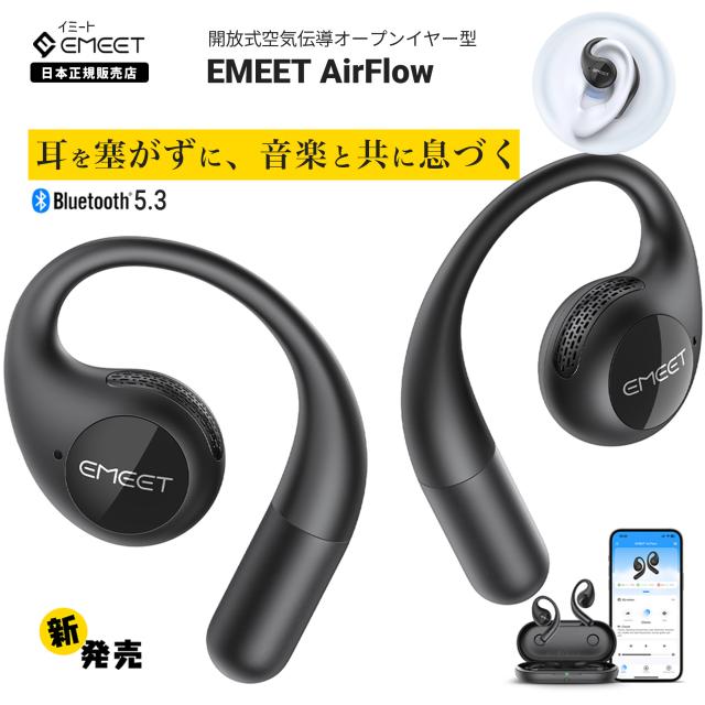 【年末年始セール 20%お得(15%OFF+5%ポイント) | 日本正規販売店】 EMEET AirFlow 開放式 空気伝導 オープンイヤー型 完全ワイヤレス イヤホン 耳が塞がない 強化された低音 急速充電 Bluetooth5.3 IPX5防水 防塵 スポーツイヤホン 2年保証