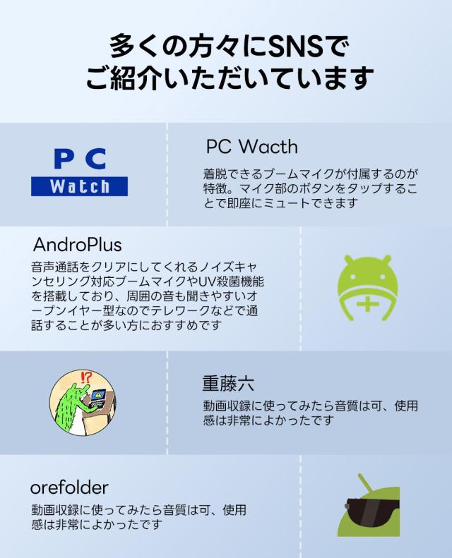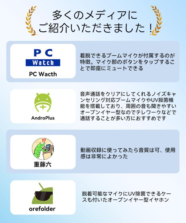 | タイプ | 空気伝導式 オープンイヤー型 |