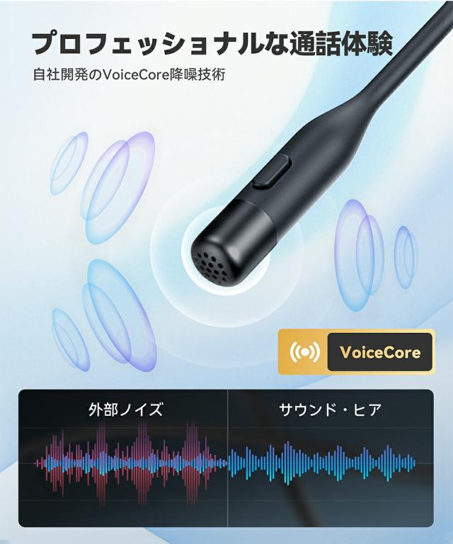 VoiceCoreアルゴリズムを採用したAirFlowは、デュアルチャンネルノイズキャンセリングを実現し、話側とリモートの両方から最大50dBのノイズを除去します。これにより、双方向ともにクリアな通信が可能となります。