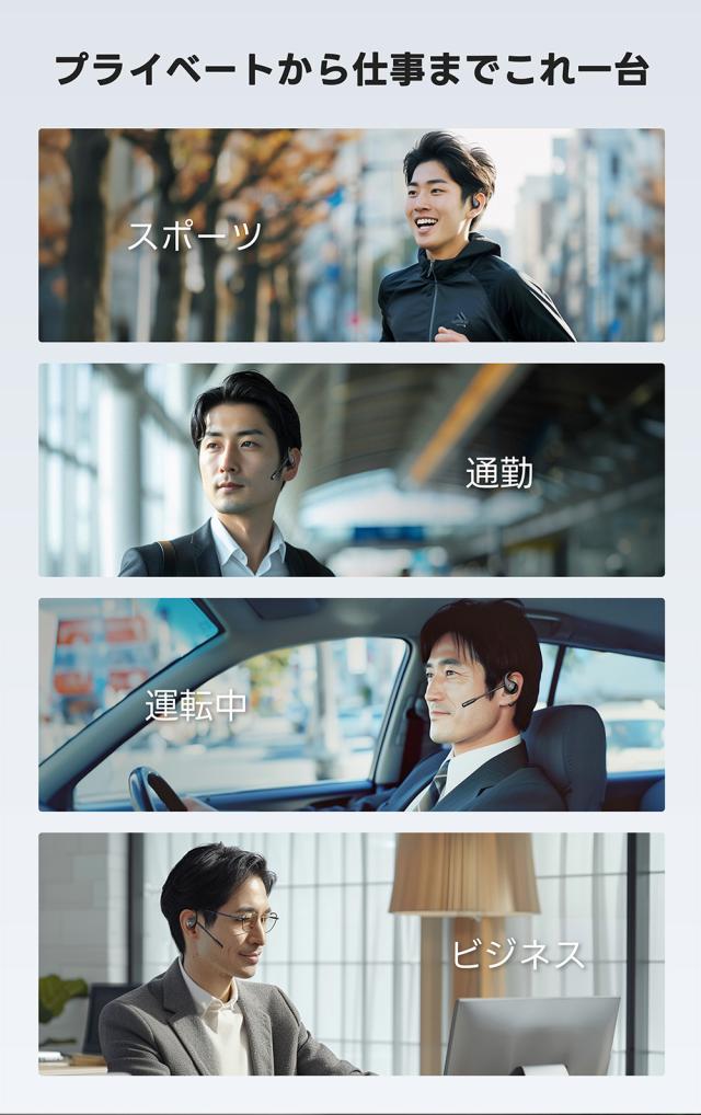 通勤や運転中にも快適に使用できるAirFlowは、耳穴をふさがない設計で周囲の音やアナウンスを確認しながらコンテンツを楽しむことができます。また、音漏れ防止技術を採用し、周囲の音をしっかりとらえながらも音漏れを抑えます。