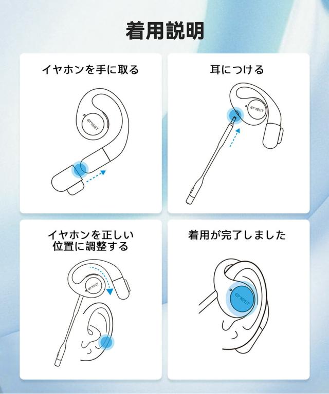 | 素材 | イヤホン:肌にやさしいシリコン 1mmのチタンメモリースチールワイヤー 充電ケース:PC + ABS |