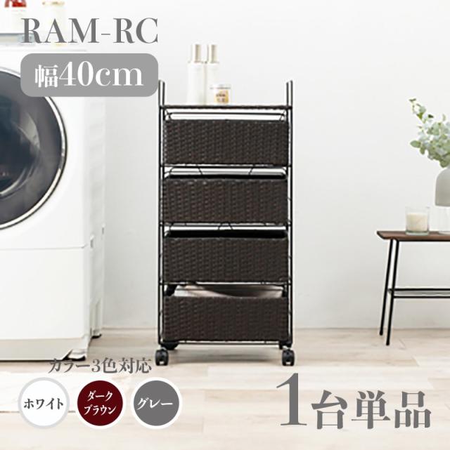 ランドリーチェスト 4段 幅40cm 1台単品 ダークブラウン ラタン調 通気性 撥水 キャスター シンプル ランドリーバスケット サニタリー