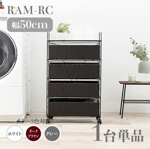 ランドリーチェスト 4段 幅50cm 1台単品 ダークブラウン ラタン調 通気性 撥水 キャスター シンプル ランドリーバスケット サニタリー