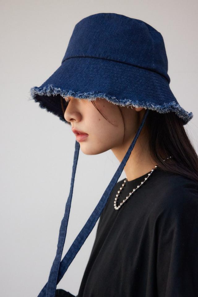 【50%OFF】 ストラップ付きフリンジデニムバケットハット WOMENSレディース
