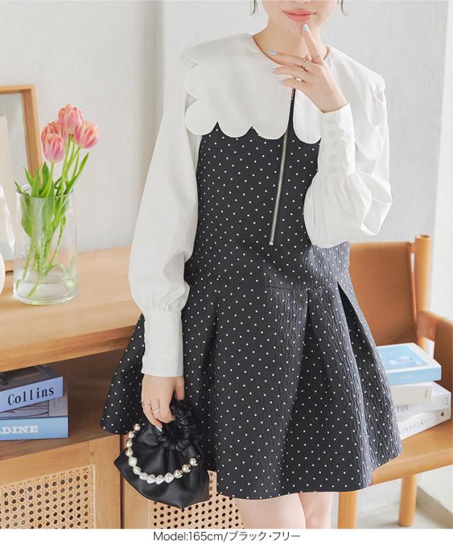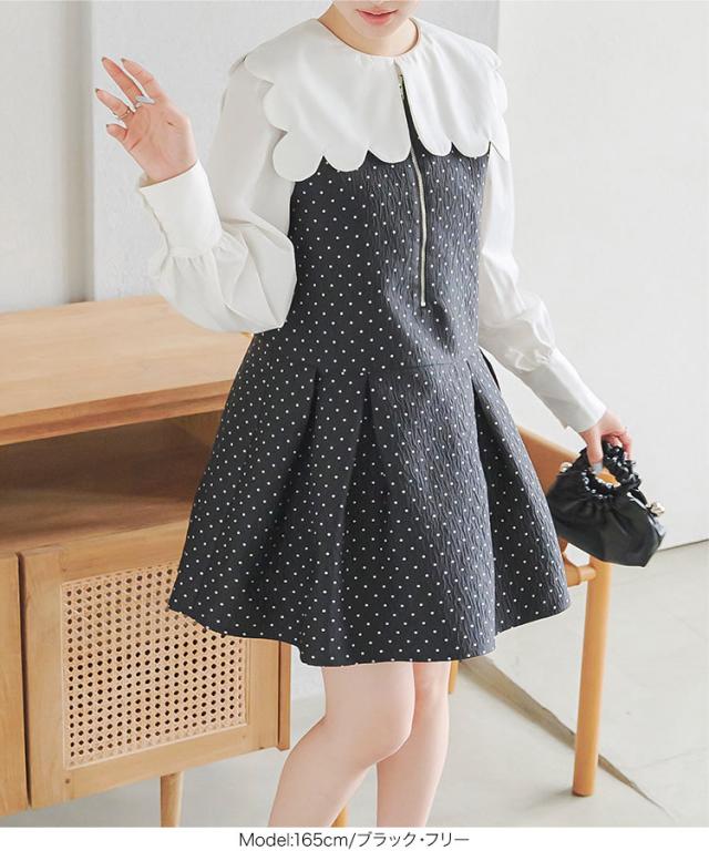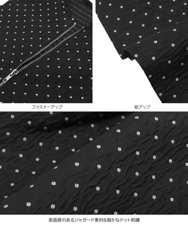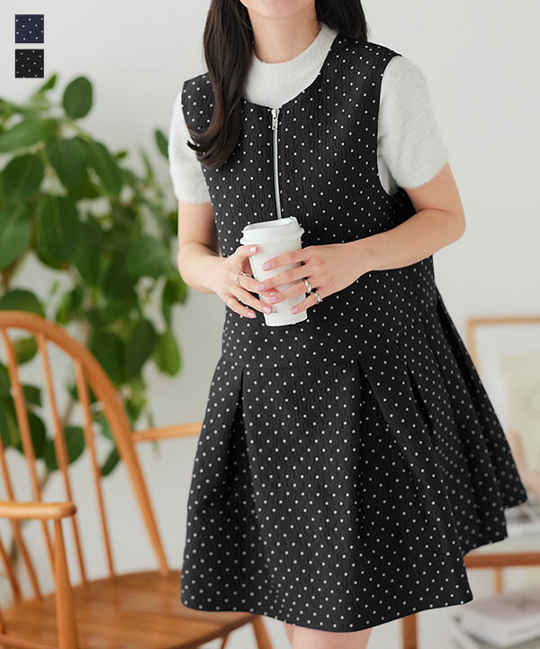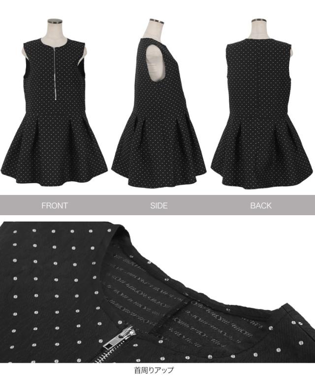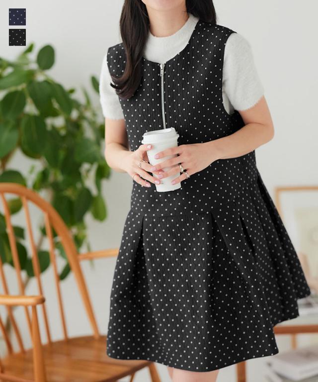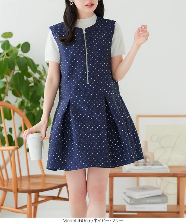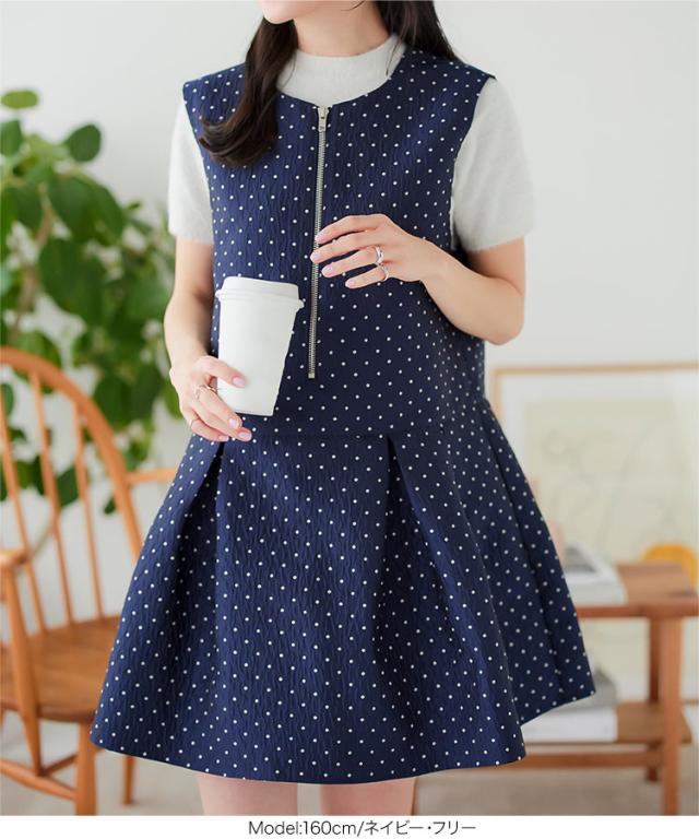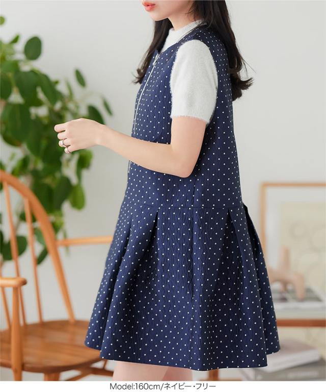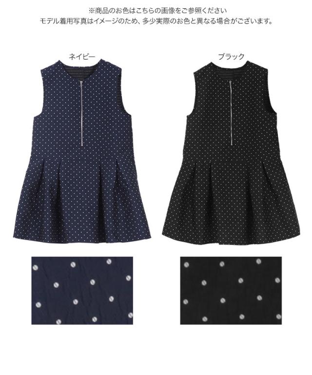 春新作 ドット柄ジャガードジップジャンスカペプラムワンピース E3381 入荷済 ドット柄 水玉 ジャンパースカート ジャンスカ ワンピース ミニワンピース ノースリーブ ジップ ファスナー ペプラム ネイビー ブラック レディース