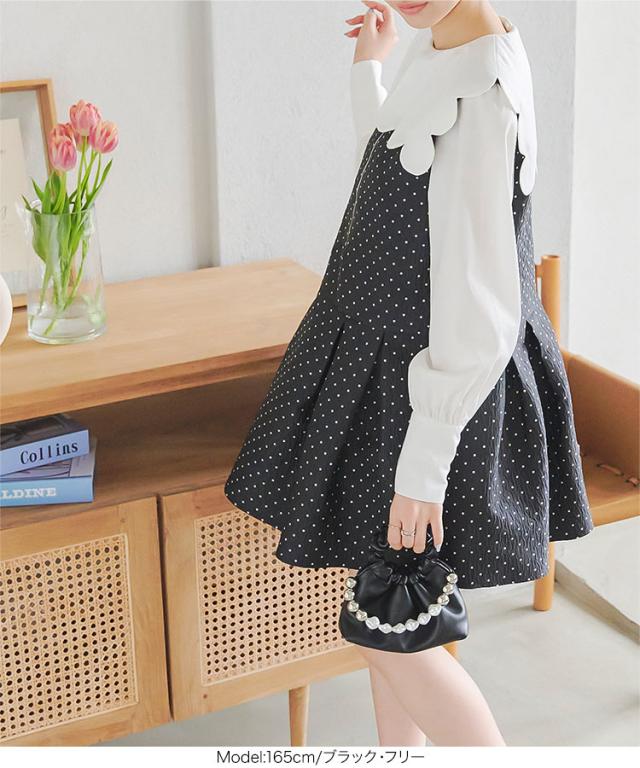 女性らしい魅力を引き出すトレンドワンピース。深く入ったタックデザインがペプラムシルエットをしっかりキープしメリハリのあるスタイルに。こなれ感のあるフロントジップは着脱しやすいのもうれしいポイント。フェミニンさたっぷりのコーデからカジュアルスタイルまでどちらの表情も楽しめる1着です。【素材・サイズ感】表面感のあるジャガード素材に細かなドット刺繍をあしらった1着。やや光沢感のある生地が品をもたらし大人可愛い印象に。スカートの立体的なフォルムは体型カバー&細見え効果もプラス。ブーツ合わせから靴下×パンプスコーデ、スニーカーとのカジュアルMIXスタイルまで足元のおしゃれの幅も広がります◎※キャンセル/変更不可※お届けまでの日程について
