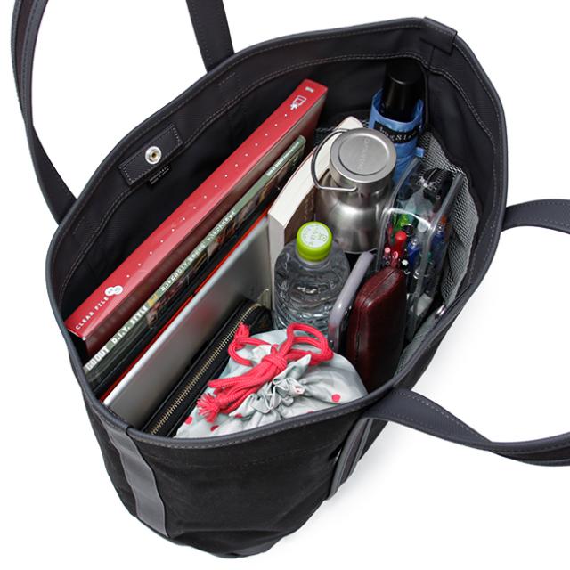 | シンプルなデザインと落ち着いたトーンのカラーリングが魅力のトートバッグのシリーズ「PORTER BOYFRIEND TOTE(ボーイフレンド トート)」です。 B4用紙やA4ファイルが収まり、たっぷりと荷物が収納できるLサイズ。内側には小物収納に役立つメッシュポケットが5つも備わっています。 タウンや通勤通学など、あらゆる用途に使用できるシンプルなデザインで、ワードローブの一部として合わせやすいのが魅力です。 メイン素材にざっくりとした目の粗いコットンキャンバスを採用しました。コットンキャンバスの裏面にはPVC加工を施し、さらに編み目を模したエンボス加工をすることでバッグに表情を持たせています。裏地は極力使わず、ポケットにメッシュ素材を用いることで鞄全体の軽量化を図りました。 PVC面の発色の良さを活かし、底面やハンドルはPVC面を表使いしています。コットンキャンバスとPVCのカラーコンビネーションも、バッグのデザインを引き立てています。 |