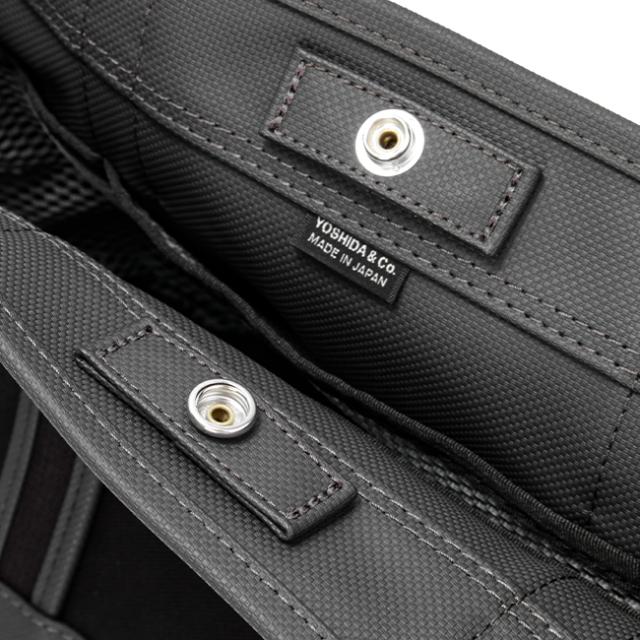 | シンプルなデザインと落ち着いたトーンのカラーリングが魅力のトートバッグのシリーズ「PORTER BOYFRIEND TOTE(ボーイフレンド トート)」です。 A5ファイルや500mlのペットボトルが横向きでも収まり、コンパクトながらもたっぷりと荷物が収納できるSサイズ。内側には小物収納に役立つメッシュポケットが6つも備わっています。 タウンや通勤通学など、あらゆる用途に使用できるシンプルなデザインで、ワードローブの一部として合わせやすいのが魅力です。 メイン素材にざっくりとした目の粗いコットンキャンバスを採用しました。コットンキャンバスの裏面にはPVC加工を施し、さらに編み目を模したエンボス加工をすることでバッグに表情を持たせています。裏地は極力使わず、ポケットにメッシュ素材を用いることで鞄全体の軽量化を図りました。 PVC面の発色の良さを活かし、底面やハンドルはPVC面を表使いしています。コットンキャンバスとPVCのカラーコンビネーションも、バッグのデザインを引き立てています。 |