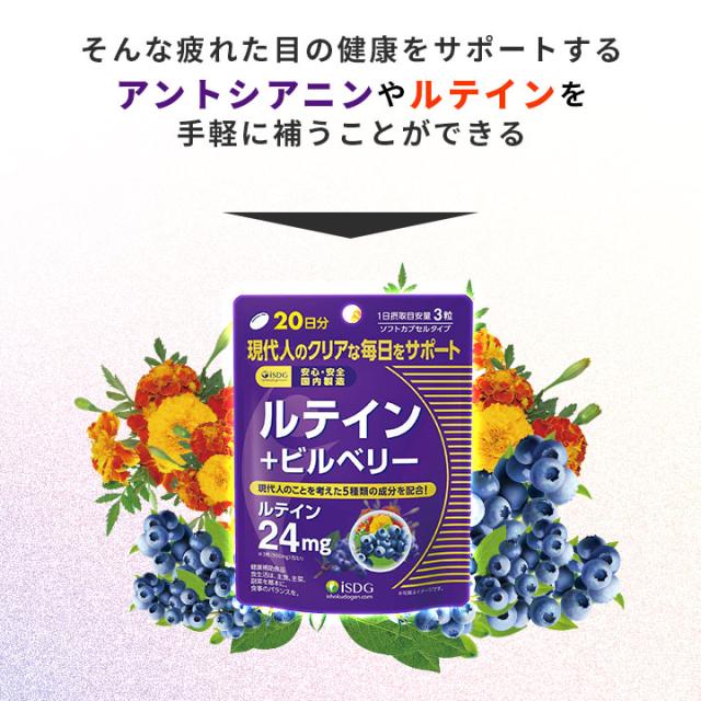 ルテイン + ビルベリー 15日分 / サプリ アントシアニン マリーゴールド抽出物 スマホ 目 疲れ 眼 瞳 スマートフォン ISDG 医食同源ドットコム ブルーライト 健康サプリ