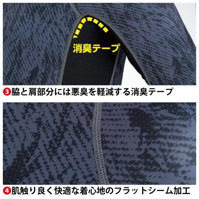 ◇機能:接触冷感・フリーストレッチ・内側消臭テープ・UVカット・伸縮性に優れ動きやすいフリーストレッチ素材・蒸れやすい脇の下も快適脇メッシュ・脇と肩部分には悪臭を軽減する消臭テープ・肌触りの良く快適な着心地のフラットシーム加工