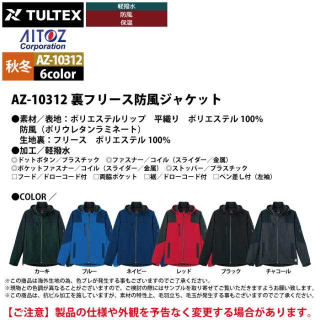 アウトドア 秋冬用 アイトス Aitoz AZ-10312 裏フリース防風ジャケット 5L