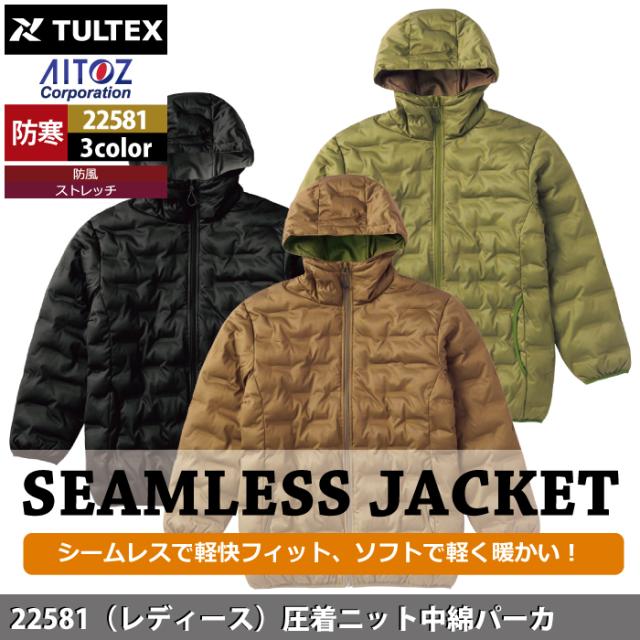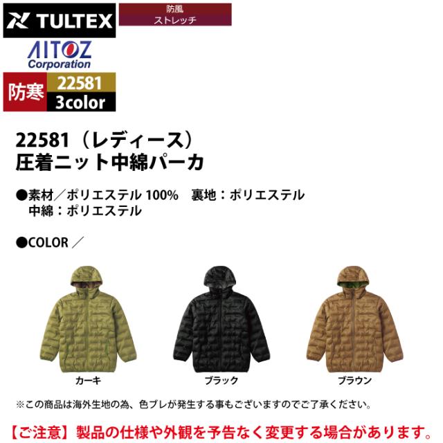 アイトス 作業服 防寒着 Aitoz 秋冬用 22581 圧着ニット中綿パーカ(レディース) M-3L