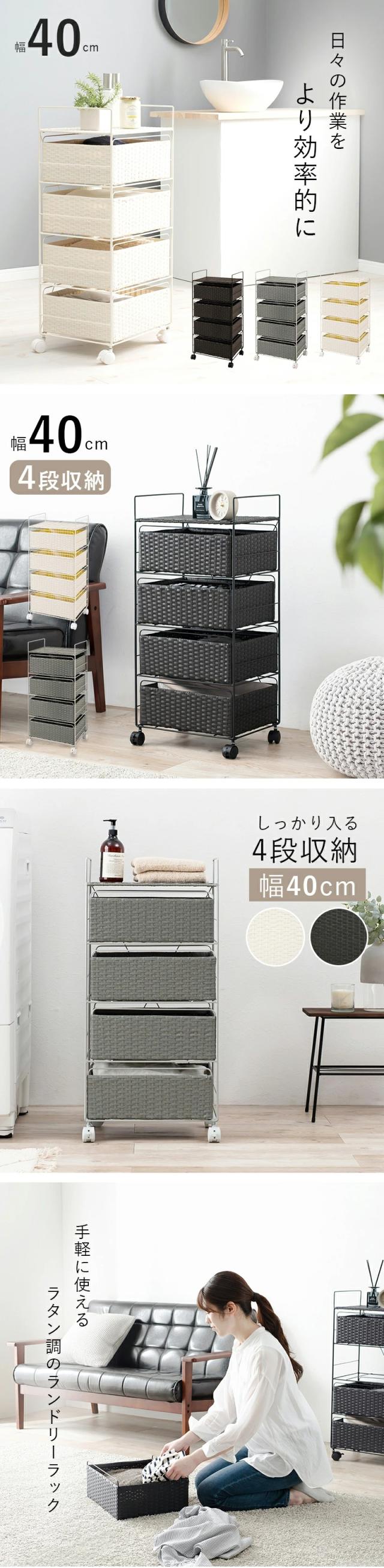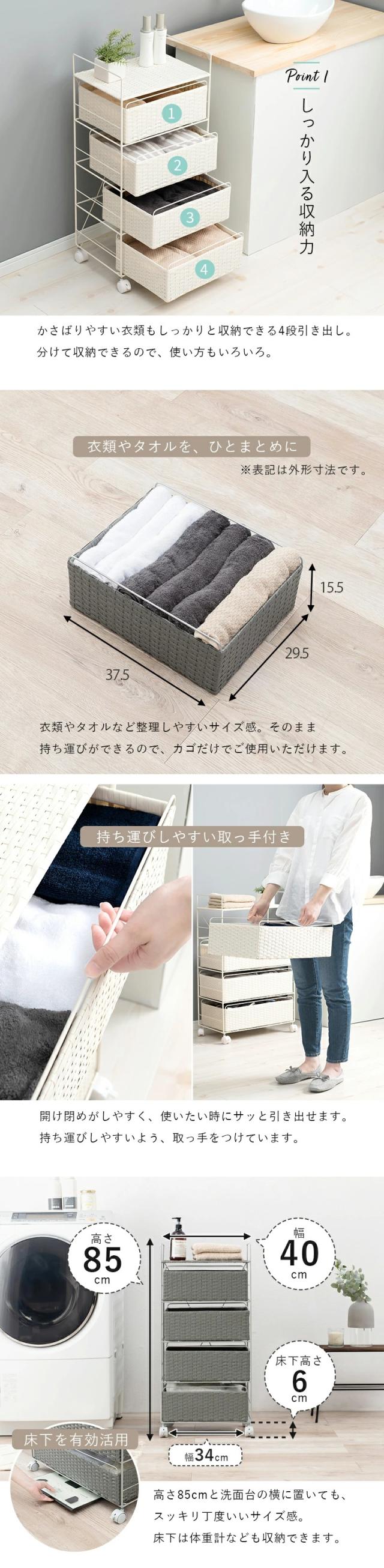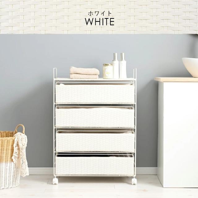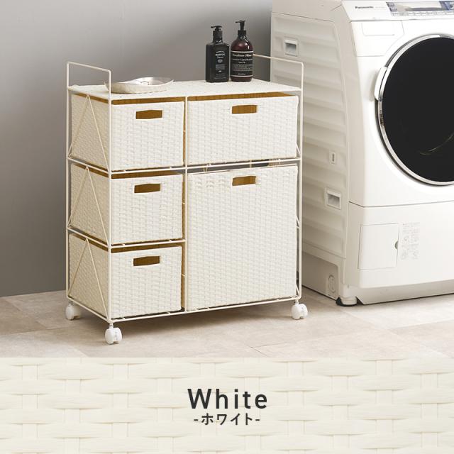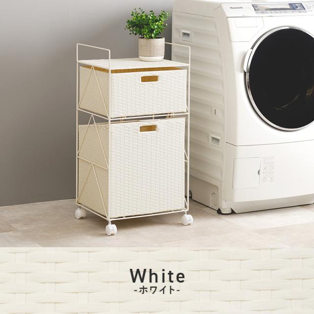 ランドリーチェスト 4段 幅40cm 2台セット ホワイト ラタン調 通気性 撥水 キャスター シンプル ランドリーバスケット サニタリー