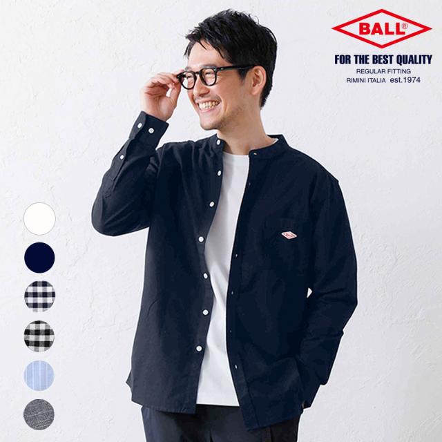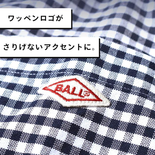 メンズ オックスシャツ バンドカラー ギンガムチェック 綿100% オフィス カジュアル ロゴ シャツ おしゃれ BALL 33660