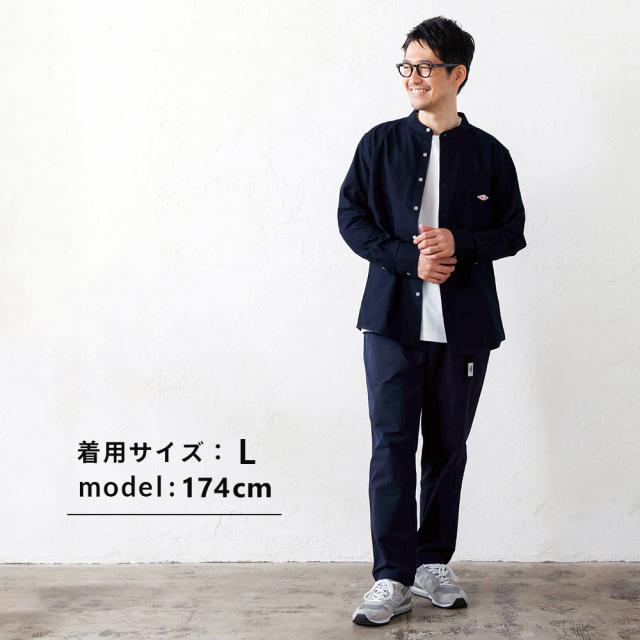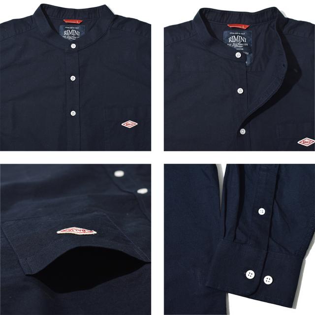 綿100%のしっかりとした生地で、バンドカラーの襟元がおしゃれなシャツです。