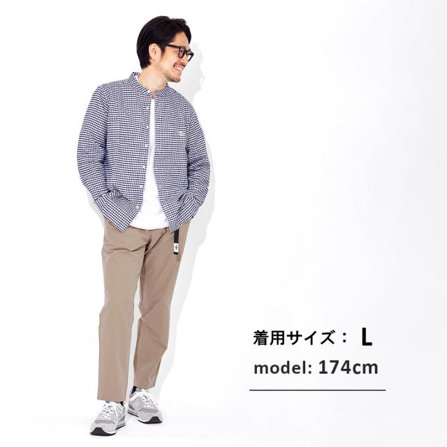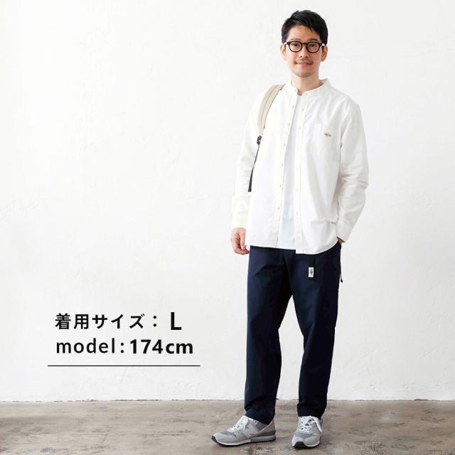 程良い抜け感が大人にうれしいバンドカラーシャツは着こなしの幅も広げてくれます。