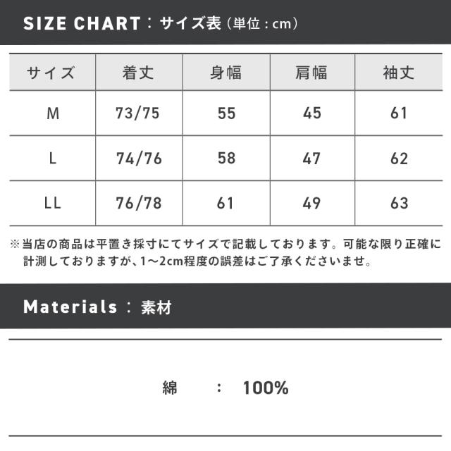 着丈: 73/75cm 身幅: 55cm 肩幅: 45cm 袖丈: 61cm