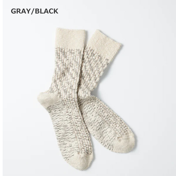 ROTOTO (ロトト) / KASURI RIBBED CREW SOCKS (R1513) (ユニセックス) (日本製) (2024春夏) (ネコポス対応)
