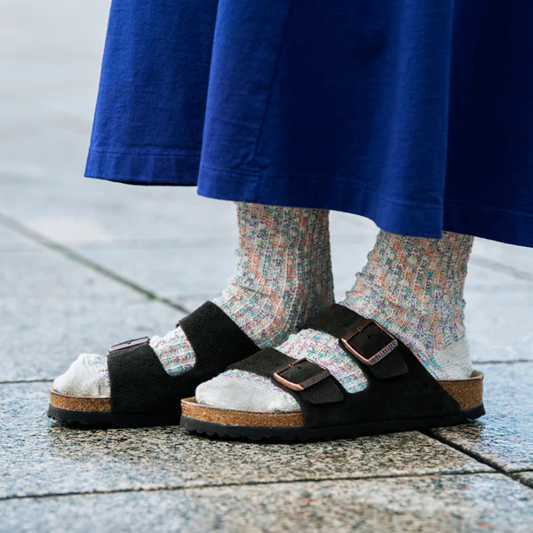 紡績会社と共に開発した〈ROTOTO〉オリジナルのオーガニックコットンのスラブ糸と、 1 本の糸を多色に染めた「かすり染め」の糸とを引き揃えた(複数の異なる糸を一緒に編むこと)リブソックス。 「かすり染め」の複雑な色合いとスラブの凹凸感をミックスした独特の表情を楽しめます。 シーズンを問わず着用しやすい、程よい厚みの生地に仕上げました。 ※乾燥機の使用は縮みの原因となりますのでお避けください。 | ||||