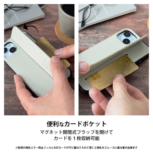 マグネット開閉式のフラップを開けるとカードポケットがあり、スマホスタンドとしても使用可能なスマホケースです。