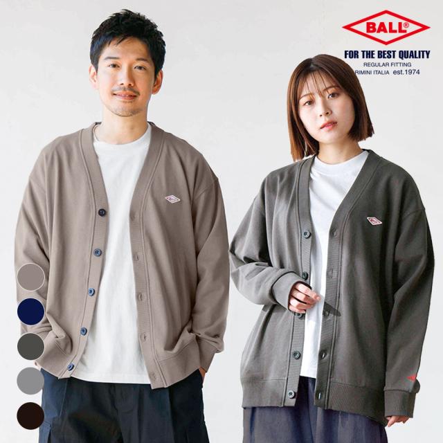 カーディガン 長袖 メンズ ユニセックス ワッペン付き 男女兼用 カジュアル 裏毛 あったかい ペアルック プレゼント BALL 63521