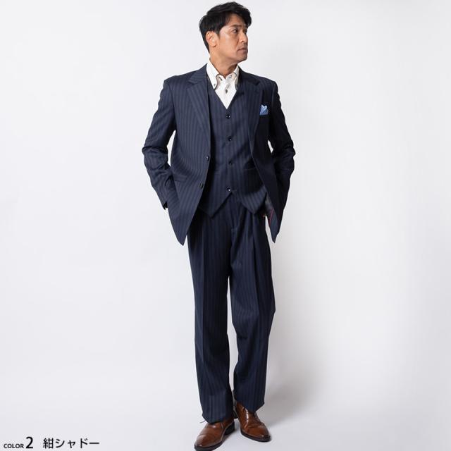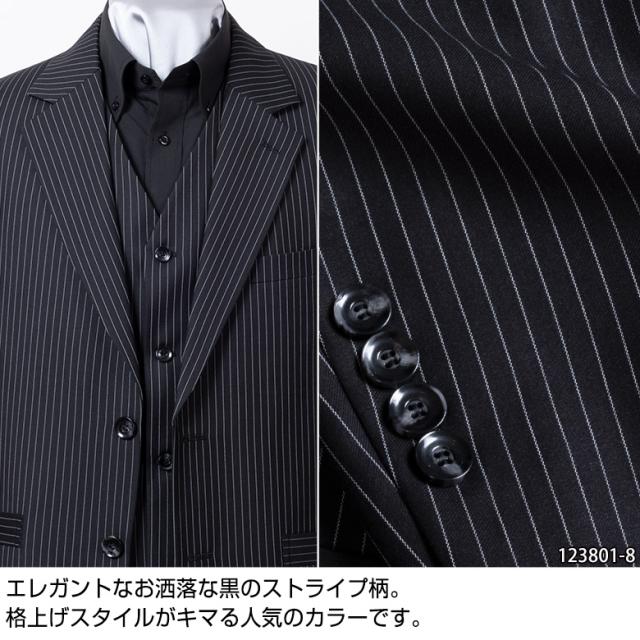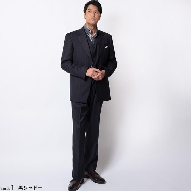 【キーワード】 ストライプ シャドーストライプ オールシーズン 秋冬 春夏 ドレスアップスーツ 結婚式 入学式 卒業式 個性的 個性派 パパスーツ お洒落 ブラック オシャレスーツ ビジネス ホスト ヤクザスーツ