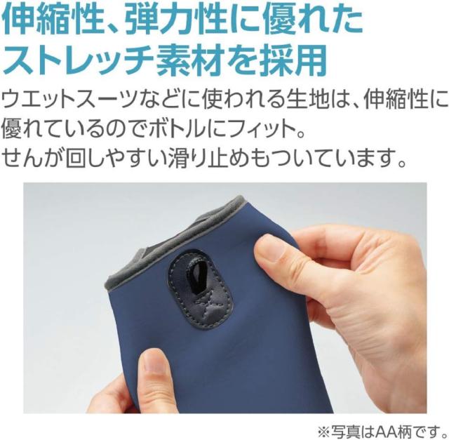 ウエットスーツなどに使われる生地は、伸縮性に優れているのでボトルにフィットします。