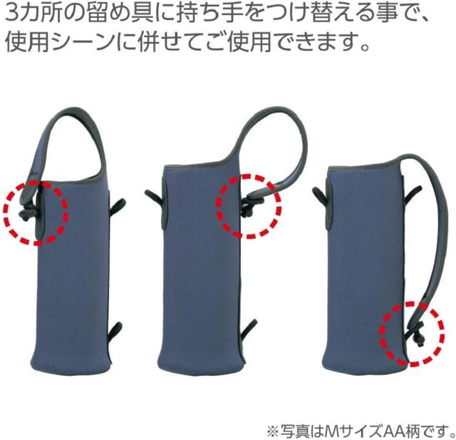 使用シーンに合わせて、3カ所の留め具に持ち手をつけ替える事ができます。