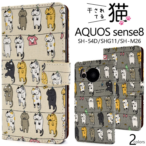 スマホケース 手帳型 AQUOSsense8 SH-54D/SHG11/SH-M26 スマホ カバー 干されてる猫手帳型ケース スマートフォン ケース 横開き かわいい おしゃれ アクオスセンス8 アクオス センス 布 メンズ レディース ユニセックス ねこ ネコ