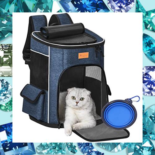 【ペットの快適さを焦点に設計されたペット用キャリーバッグ】 1.窮屈しない安定な大空間:幅32cmx奥行25cmx高さ40cmの収納スペース、8kgまで(目安)の制限体重の大空間キャリーリュックなので、ペットは窮屈に感じません。リュックの回りにそれぞれぐるっとワイヤーを内蔵しており、高強度の骨組みでキャリーバッグが変形しにくいからペットも安心です。 2.通気性抜群の3面メッシュ:ペットキャリーバッグの3つの側面は、通気性に優れた高品質のメッシュ素材です。リュックの中の熱気や湿気が放出でき、内部の空気循環を確保するだけでなく、飼い主さんがメッシュ窓からペットの状況を確認でき、ペットもメッシュ窓を通し外の環境をはっきりと観察、飼い主さんの声を聞こえるようにすることで、最初キャリーバッグに慣れていないペットの不安を最低限にします。