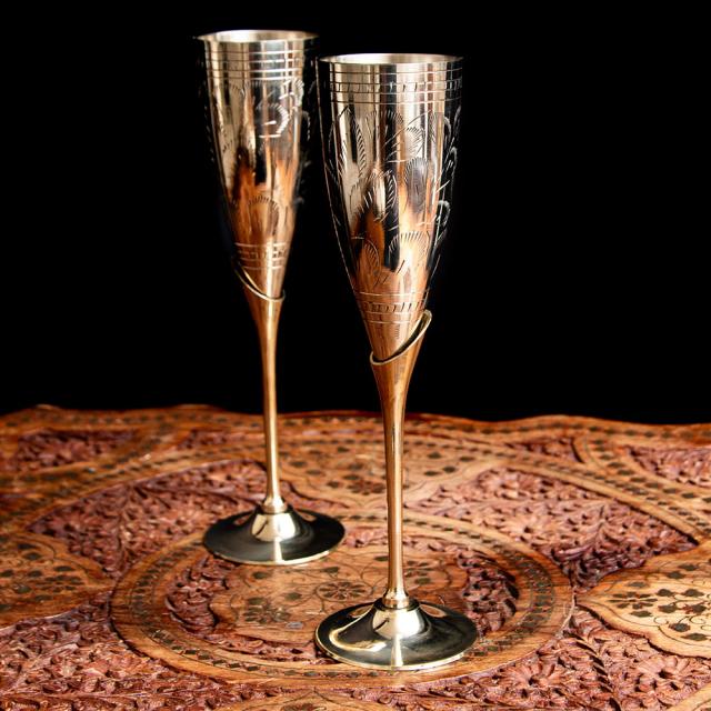 【送料無料】 ネパールの真鍮製 ワイングラス ウォーターグラス 高さ24cm程度 / コップ カップ ダルバート インド カレー皿 ターリー チャイ チャイカップ 食器 アジア うつわ アジアン食器 エスニック食器