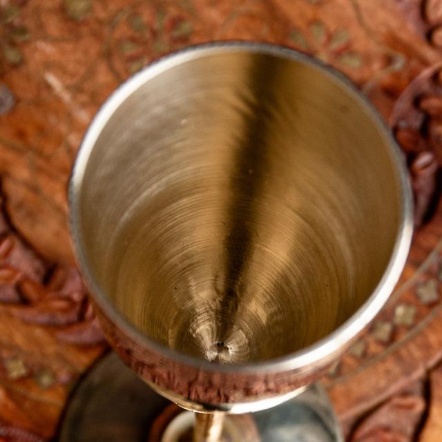 重厚な趣のある、ネパールの真鍮製ワイングラスです。