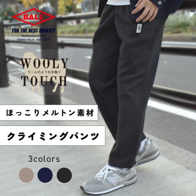 メンズ クライミングパンツ メルトン 秋 冬 暖かい ストレッチ 保温 発熱効果 カジュアル ウェビングベルト BALL 62597