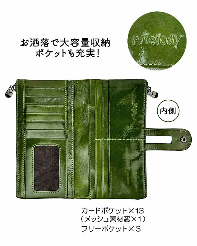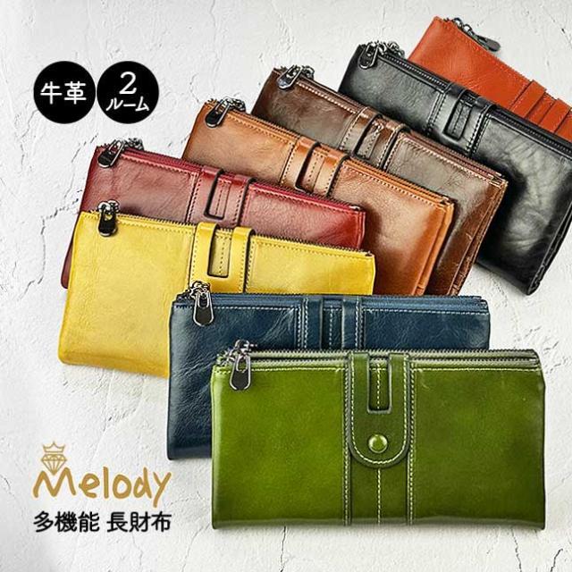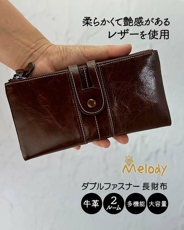 長財布 レディース 本革 11188 Melody メロディ ダブルファスナー 長財布 多機能 大容量 定期入れ 牛革 リアルレザー おしゃれ シンプル 女性 母 男女兼用 ユニセックス 通勤 旅行 プレゼント 母の日ギフト 人気 ブラック ネイビー ブラウン 黄色 赤 緑 キャメル
