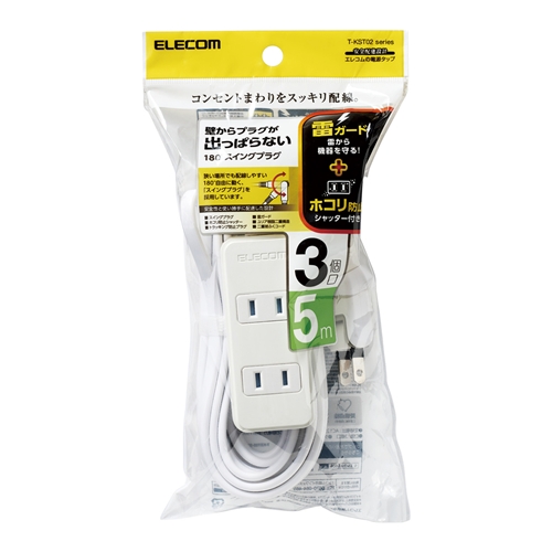 エレコム T-KST02-22350WH 電源タップ(雷ガード・ほこりシャッター) 5m