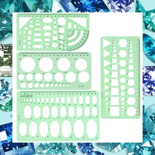 【商品仕様】セット内容:図面テンプレート×4、収納袋×1 材質:プラスチック サイズ:最大:22×13.3cm 最小:19.3×10cm カラー:グリン(透明)