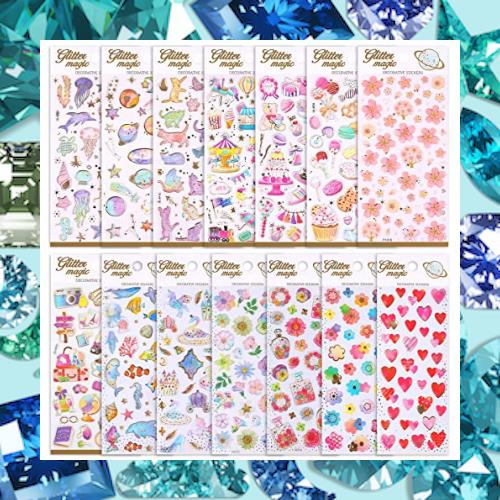 SANNIX キラキラシール 女の子 14シート ごほうびシール 手帳ステッカー ぷくぷく シール キラキラ ハート 立体 デコ ステッカー ごほう