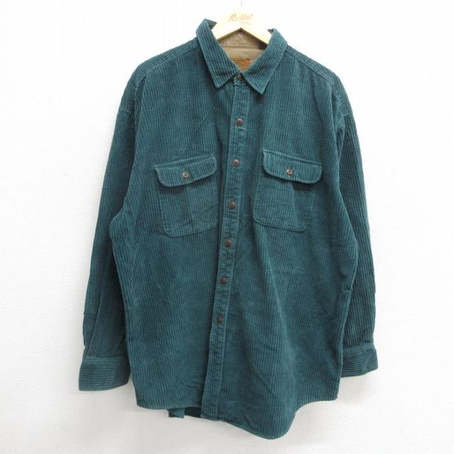 古着 セントジョンズベイ 長袖 シャツ メンズ ロング丈 コットン 濃緑 グリーン XLサイズ 中古 トップス 中古 古着