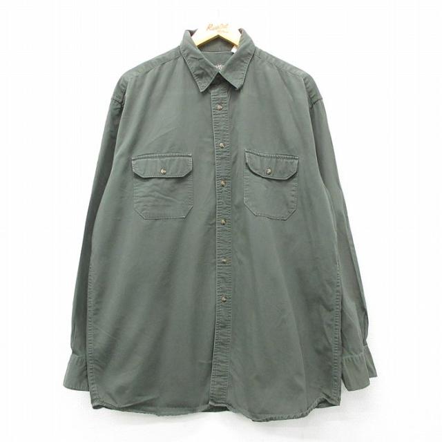 【商品名】 XL★古着 セントジョンズベイ 長袖 シャツ メンズ ロング丈 コットン 濃緑