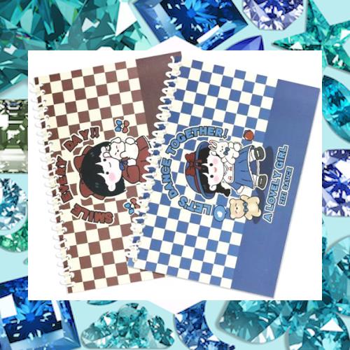 【かわいい】2種類のかわいいスタイルからお選びいただけます。美しい絵柄の板紙の表紙と白い金属コイルのステープル。