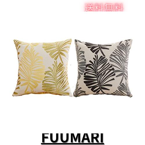 YunJeude クッションカバー 45x45cm 北欧 2枚セット 綿とリネン おしゃれ 可愛い 葉の柄 ジャガード織 ファスナー式 シンプル ナチュラル